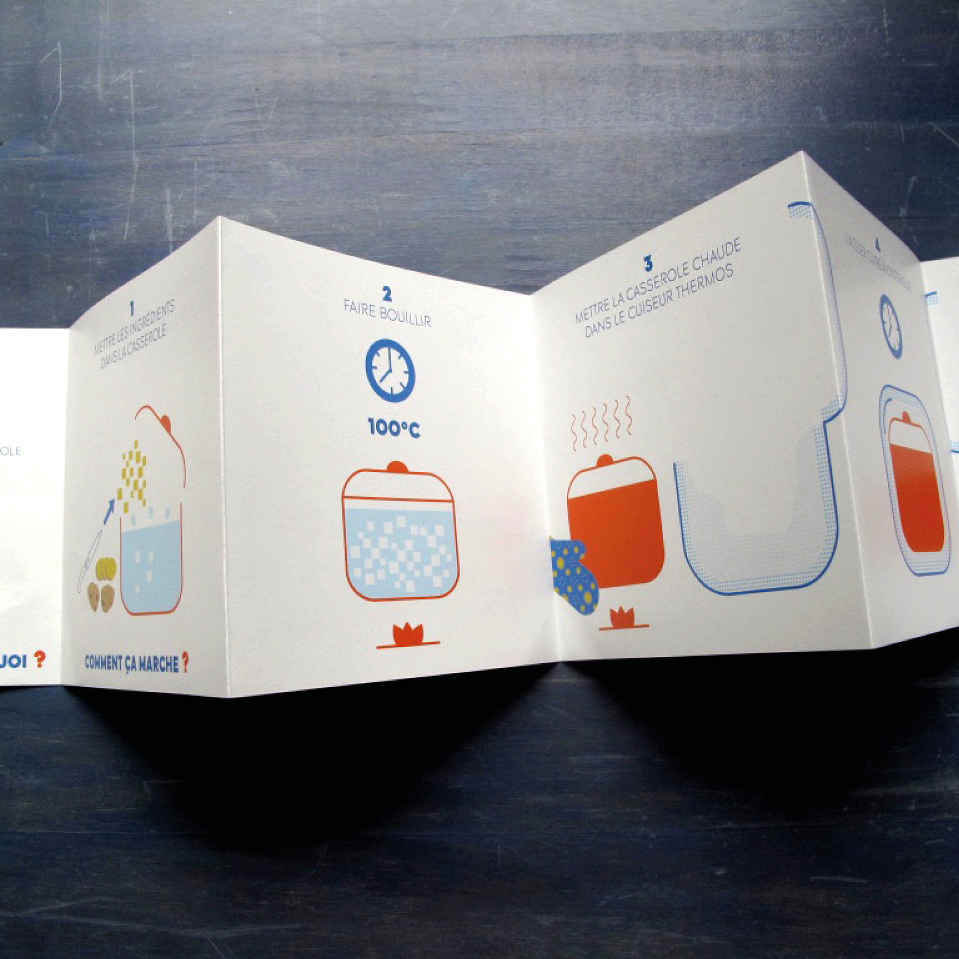 Création d'un mode d'emploi d'un cuiseur thermos. Cette notice devait pouvoir être comprise avec un minimum de textes à l'aide de schémas.