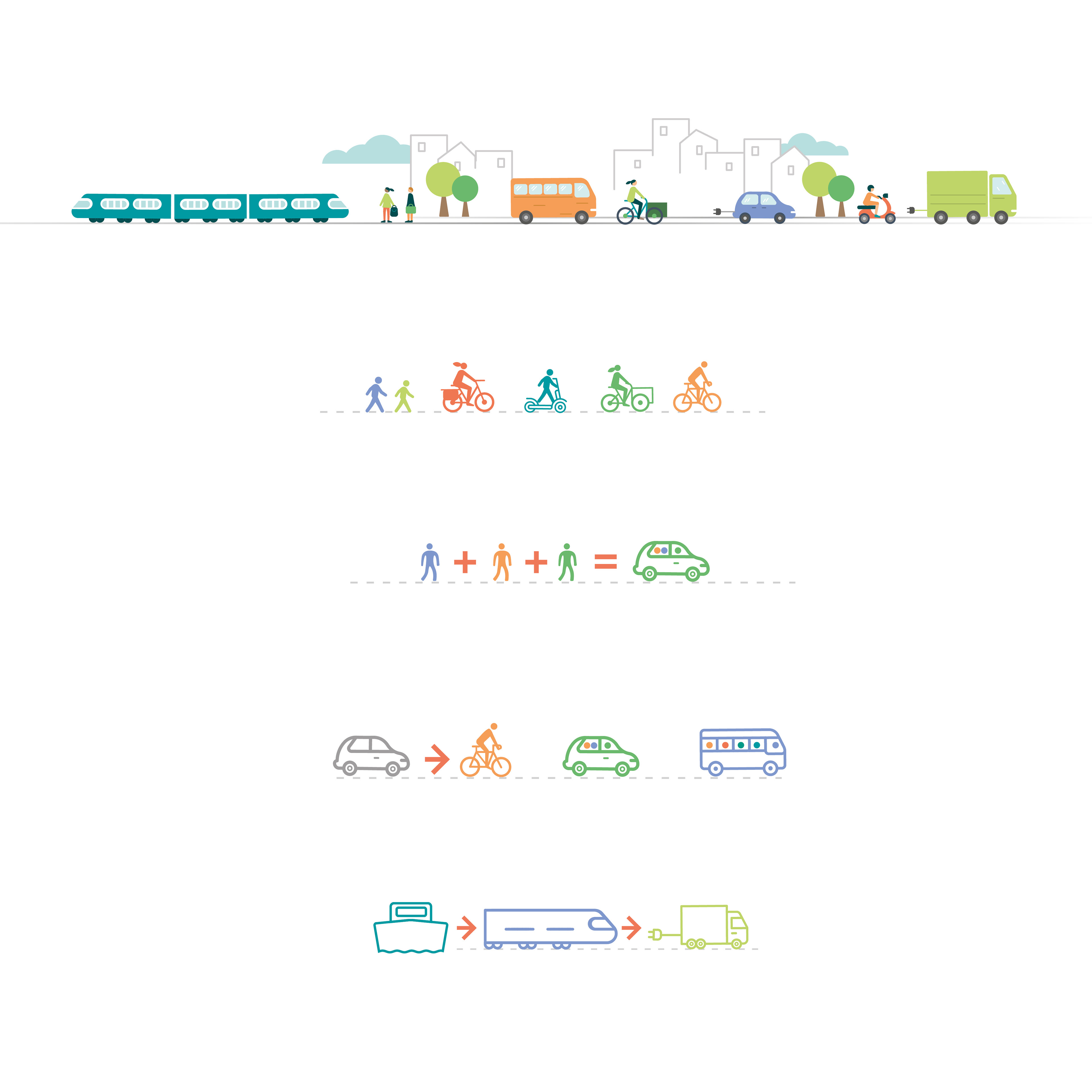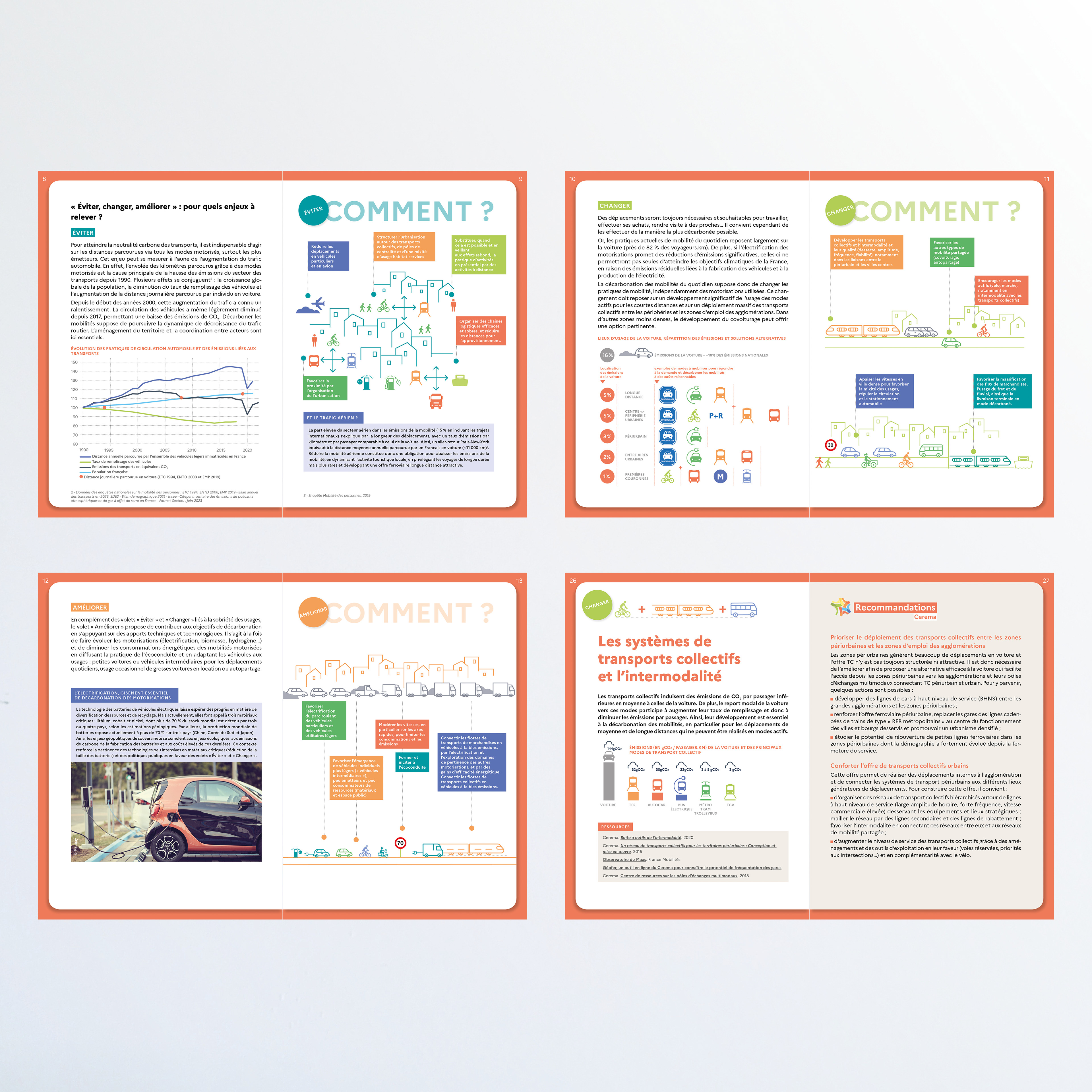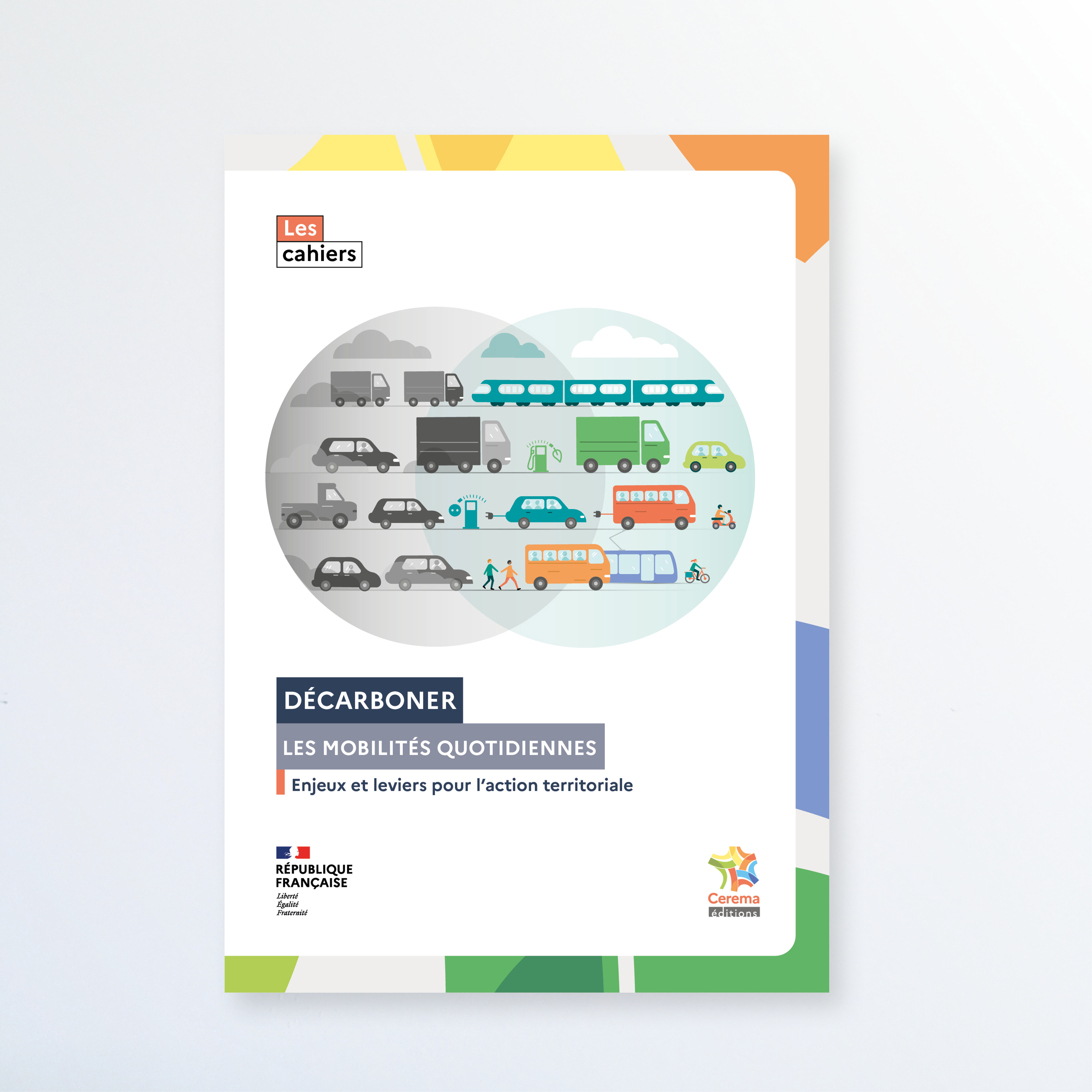Création des illustrations et mise en page du cahier du Cerema, "décarboner les mobilités quotidiennes"