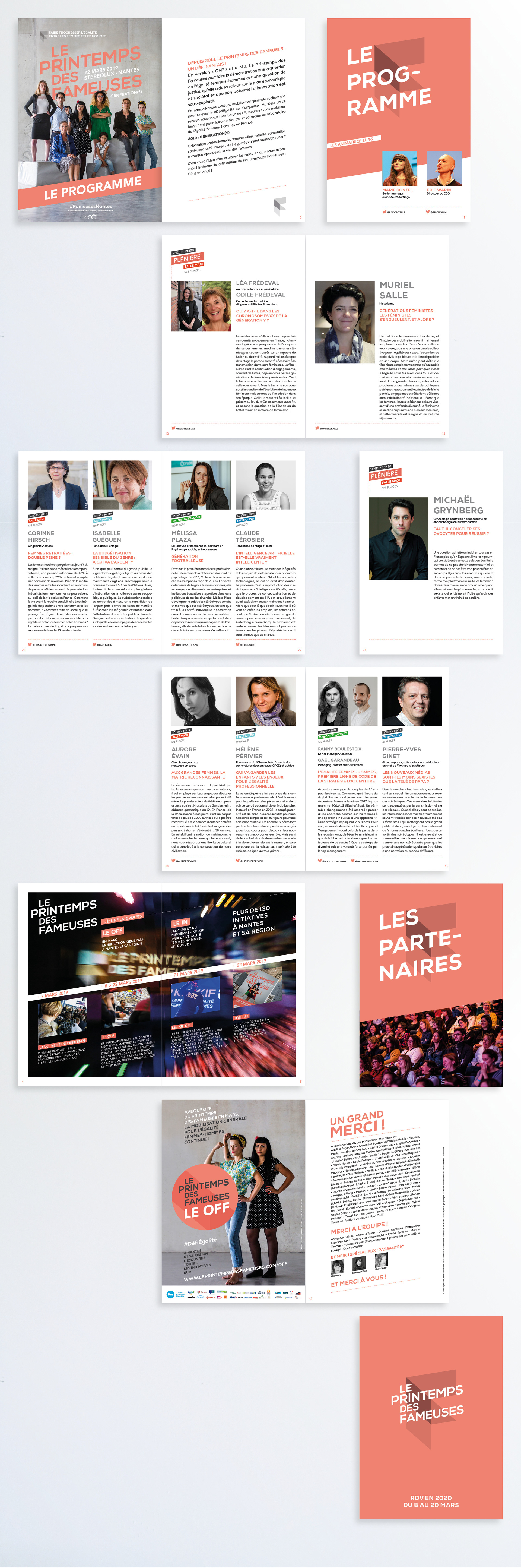 Conception des supports de l'évènement "le printemps des fameuses" - Maquette et mise en page du programme - Déclinaison des affiches.