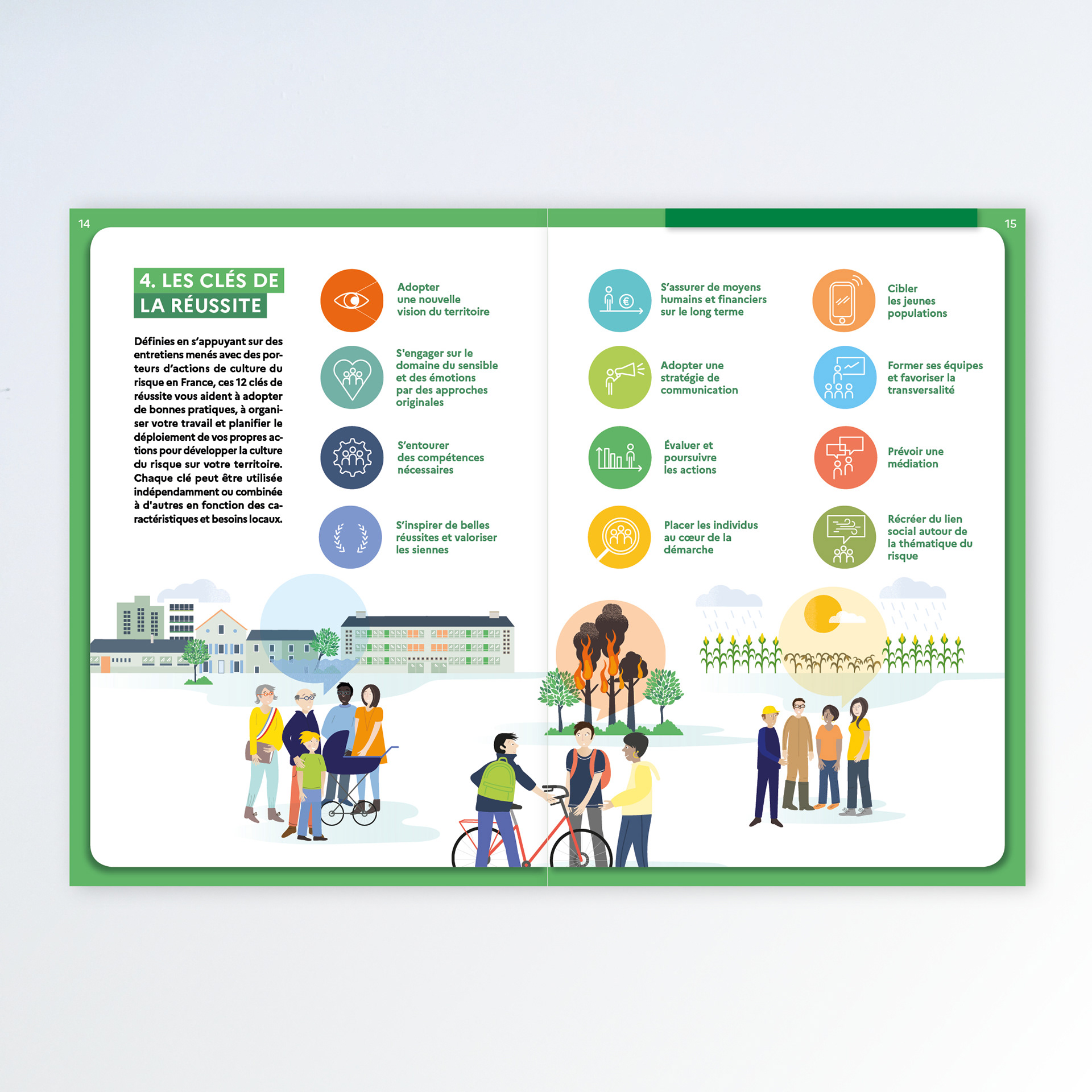 Création des illustrations et mise en page du cahier du Cerema, La cultutre du risque.