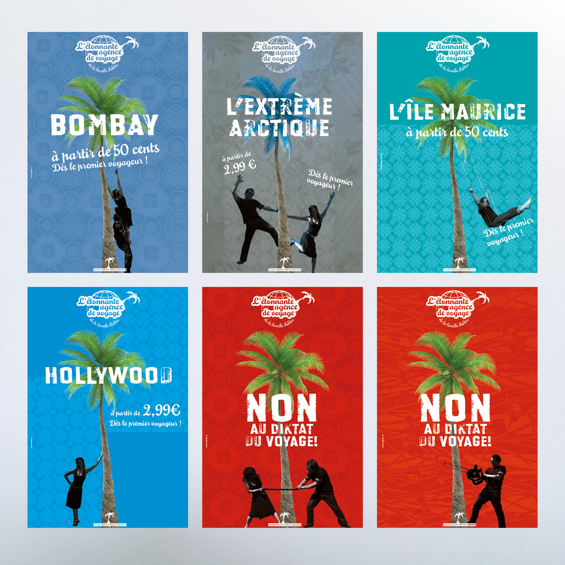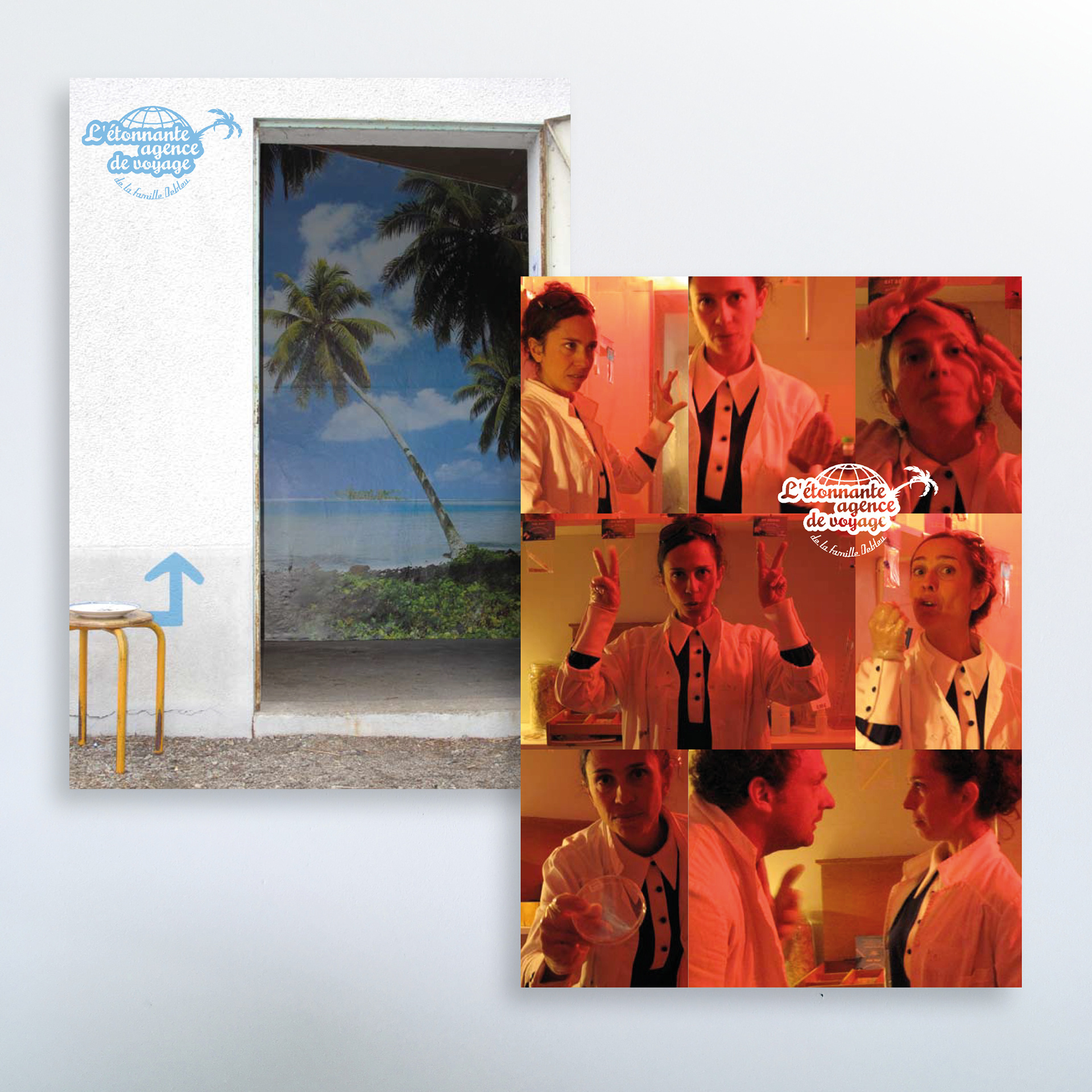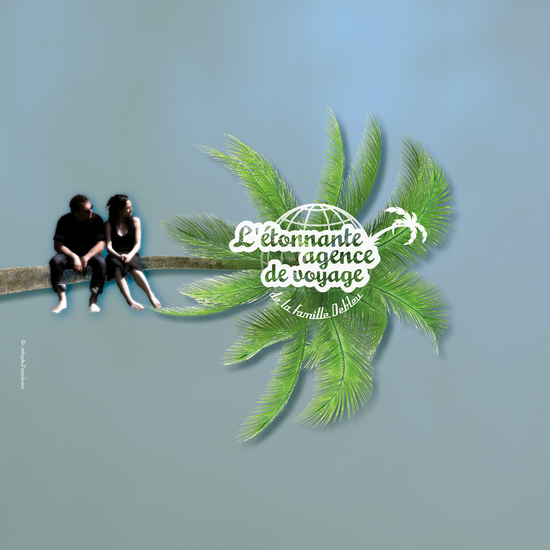 Création de l'identité graphique de lé création de la compagnie TMscène "l'étonnante agence de voyage" de la famille Debleu.